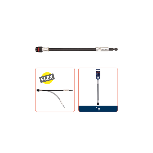 Dankzij de flexibele schacht kun je onder hoeken werken en moeilijk bereikbare schroeven moeiteloos vastzetten, zonder dat je je positie constant hoeft aan te passen. De E6.3-aansluiting zorgt voor brede compatibiliteit met standaard bits en schroefmachines. Deze bithouder combineert flexibiliteit, gemak en precisie in één praktische tool.
